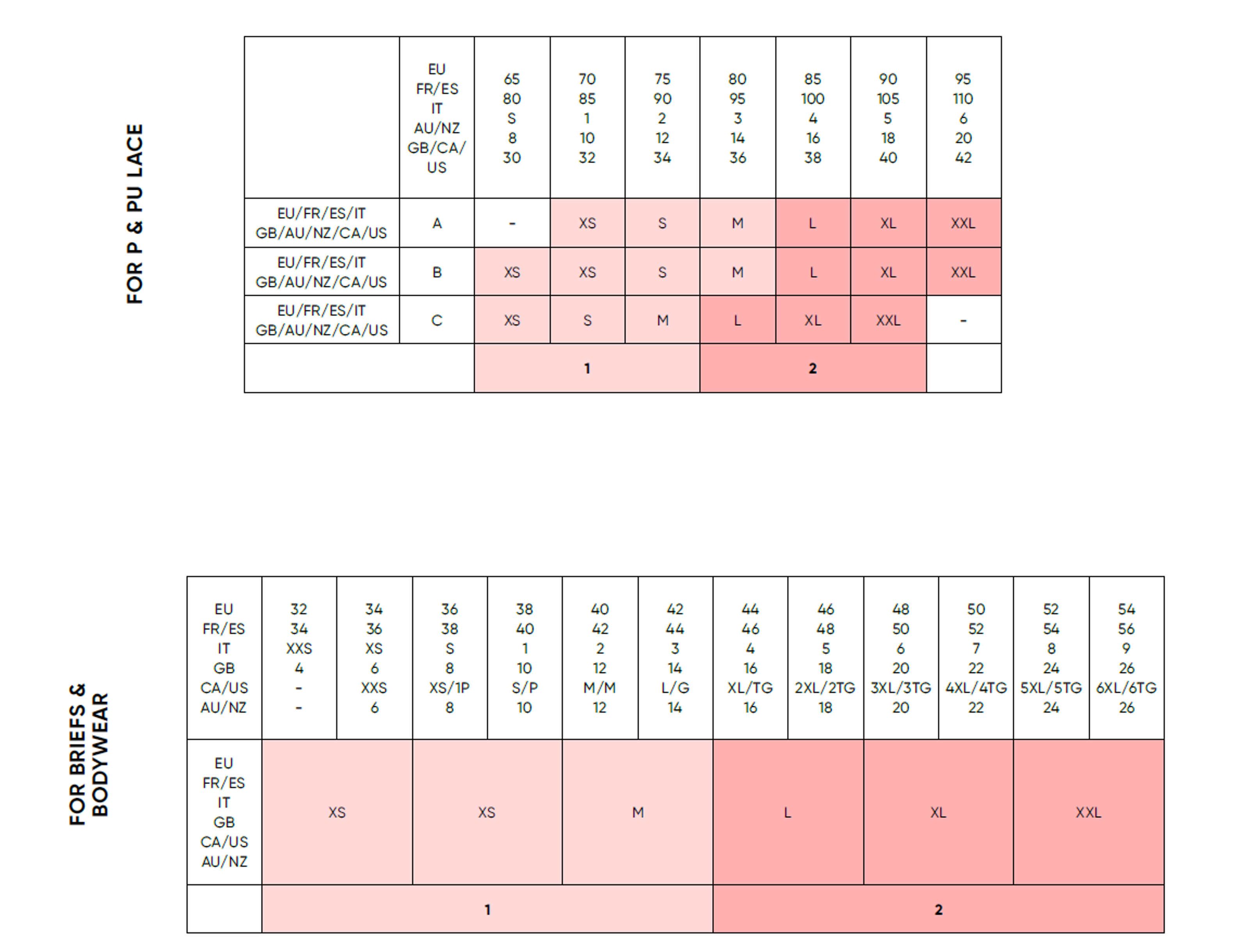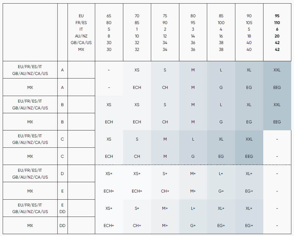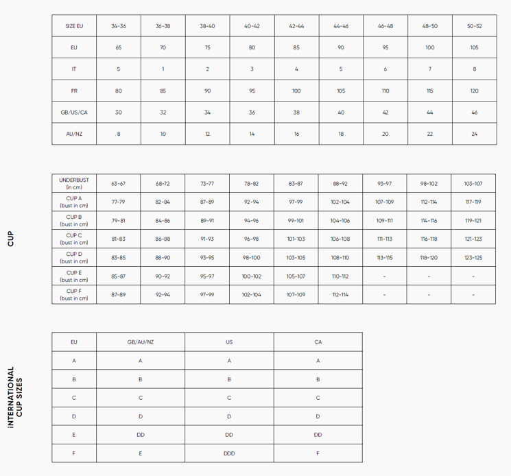 EU Unterbrustgrößen: